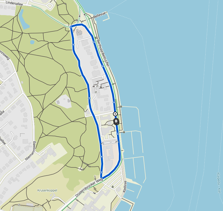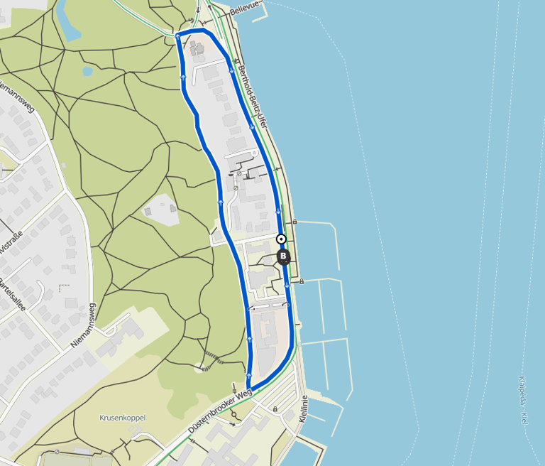 Gefahren wird direkt an der Kieler Förde in den Straßen Kiellinie und Düsternbrooker Weg im Uhrzeigersinn. Die Rückennummer ist links zu tragen.